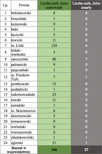 Łącznie w województwie łódzkim wyzdrowiało już 346 osób, u których wcześniej potwierdzono zakażenie wirusem SARS-CoV-2.