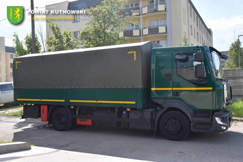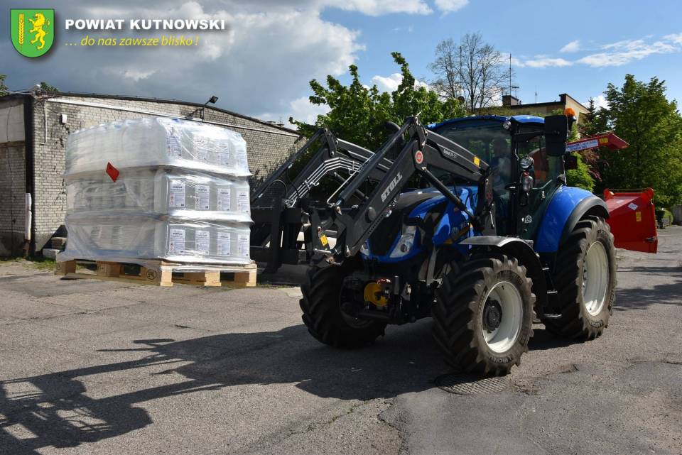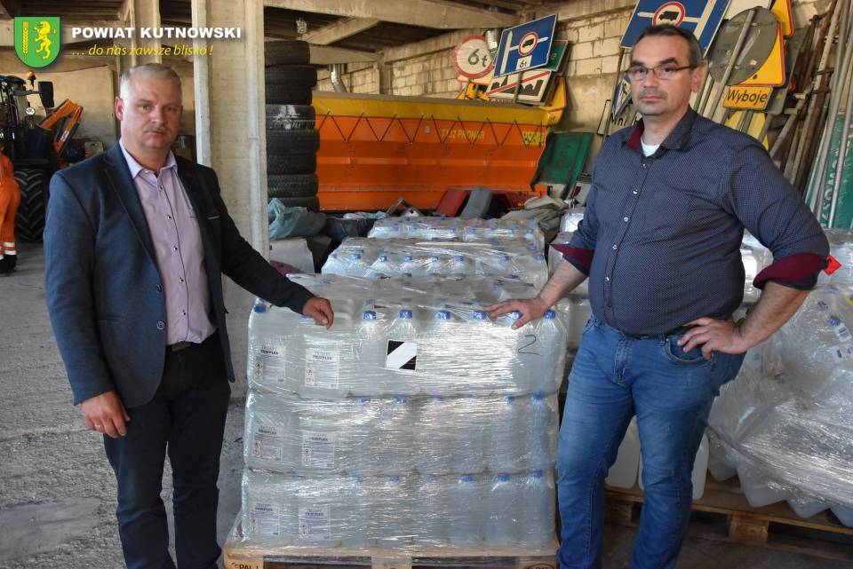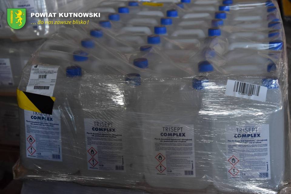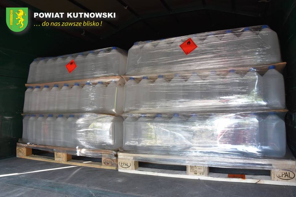 Na potrzeby Starostwa Powiatowego w Kutnie, w związku z trwającą epidemią i rozprzestrzenianiem się choroby COVID-19, przekazano od Wojewody Łódzkiego 4860 litrów płynu do dezynfekcji (łącznie 9 palet).