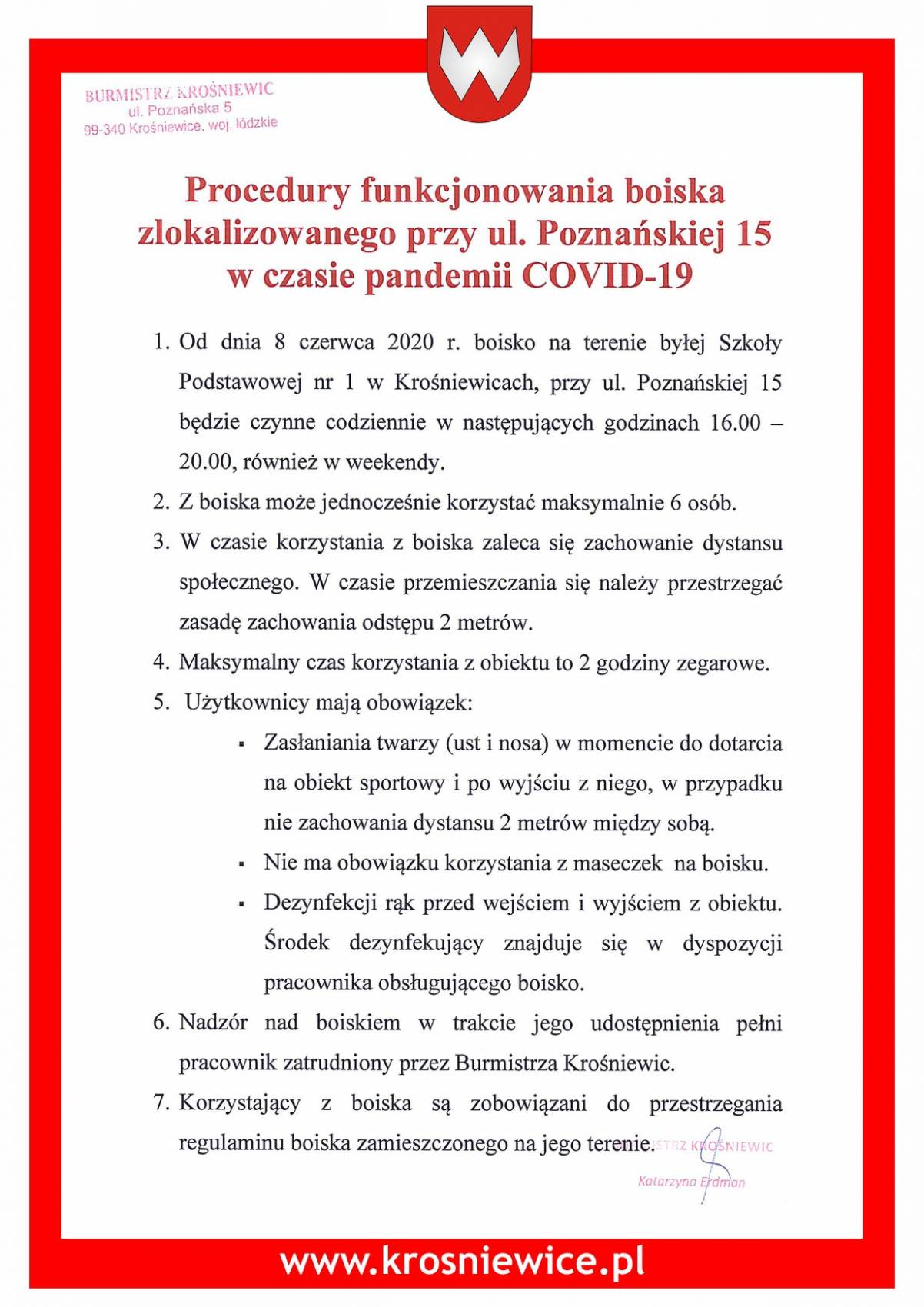 - Teren został oczyszczony oraz zdezynfekowany i przygotowany do przyjęcia osób chcących aktywnie spędzać czas. Należy jednak pamiętać, że są nowe zasady korzystania z obiektu, o których można przeczytać w informacji Burmistrza Krośniewic Katarzyny Erdman - czytamy w komunikacie na stronach Urzędu Miejskiego w Krośniewicach.