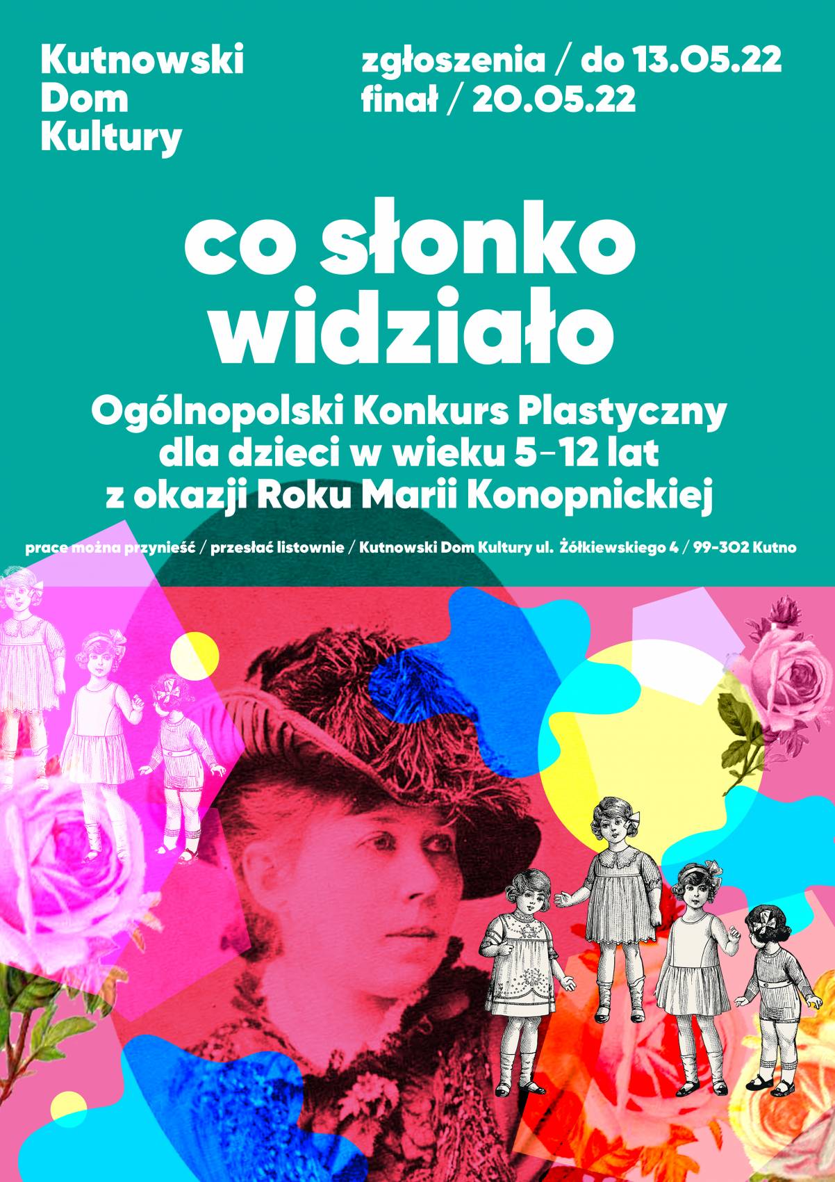 W związku z przypadającą w maju 180. rocznicą urodzin Marii Konopnickiej Sejm Rzeczypospolitej Polskiej ustanowił rok 2022 Rokiem Marii Konopnickiej. Z tej okazji Kutnowski Dom Kultury zaprasza dzieci i młodzież do udziału w Ogólnopolskim Konkursie Plastycznym pn. „Co słonko widziało".