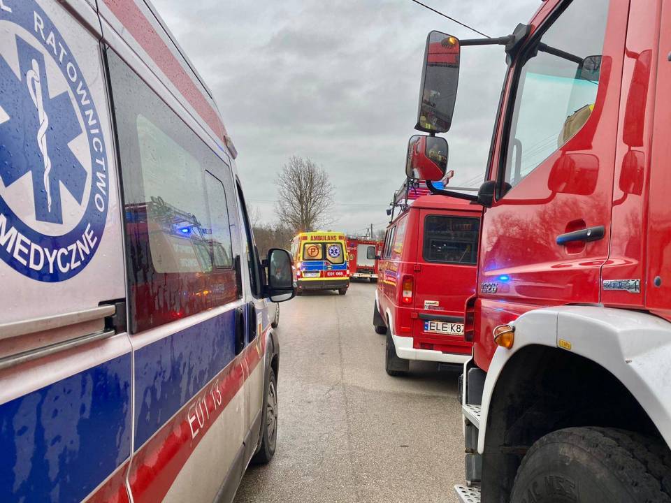 Na miejscu pracują dwa zastępy PSP Łęczyca oraz dwie jednostki OSP Piątek, a także policja i dwie karetki ZRM.