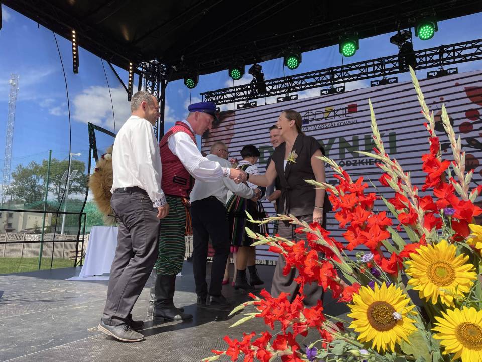 Zapewniła również o wsparciu dla obszarów wiejskich – w tym roku sołectwa z woj. łódzkiego otrzymały rekordowe 40 mln zł m.in. na świetlice i miejsca integracji. Część obrzędową rozpoczął Zespół Śpiewaczy „Sędziejowianki", a następnie starostowie dożynek – Agnieszka Węglewska i Paweł Michalak – przekazali na ręce marszałek bochen chleba upieczony z tegorocznych zbóż.