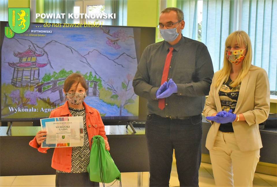 Nagrody w imieniu Starosty Kutnowskiego wręczyli Członkowie Zarządu Powiatu Kutnowskiego – Jolanta Pietrusiak oraz Tomasz Walczewski. Pierwsze miejsce w konkursie zajął Dawid Mycka, drugie miejsce zajął Filip Chłopicki, a trzecie Natalia Woźniak.