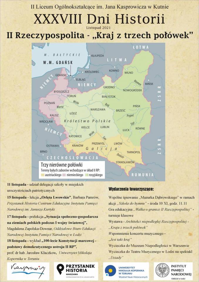 Od 15 do 19 listopada w II Liceum Ogólnokształcącym im. Jana Kasprowicza w Kutnie trwała 38. edycja Dni Historii przebiegająca pod hasłem „II Rzeczpospolita – Kraj z trzech połówek".