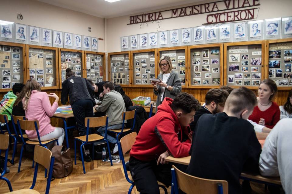 17 listopada młodzież uczestniczyła w lekcjach online: „Sytuacja społeczno – gospodarcza na ziemiach polskich podczas I wojny światowej" przeprowadzonych przez Magdalenę Zapolską - Downar z Oddziałowego Biura Edukacji Narodowej IPN w Łodzi. Lekcje zwróciły uwagę uczniów na trudną sytuację gospodarczą i dramatyczne warunki życia codziennego na ziemiach polskich w trzech zaborach podczas Wielkiej Wojny.