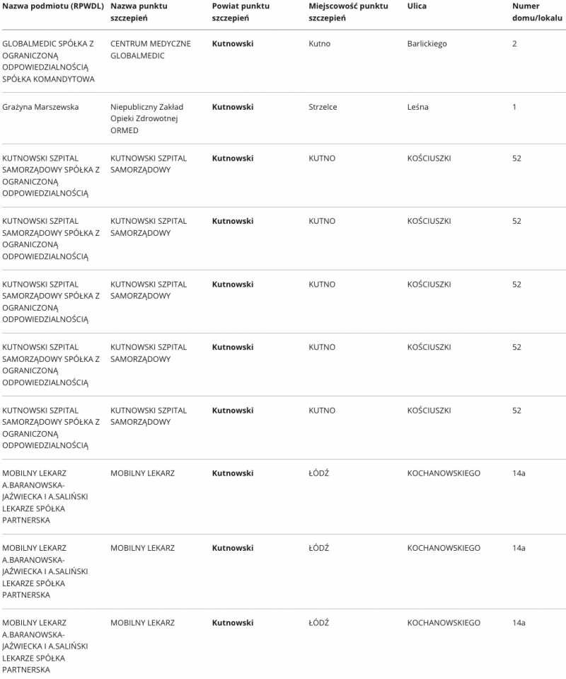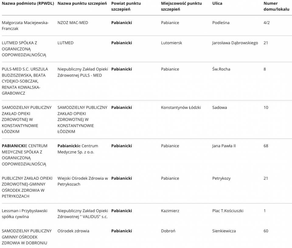 W województwie łódzkim aktualnie zaakceptowano ponad 400 punktów, w których odbywać się będą szczepienia na Covid-19. Specjalnie dla Państwa prezentujemy wykaz punktów, z podziałem na poszczególne powiaty.