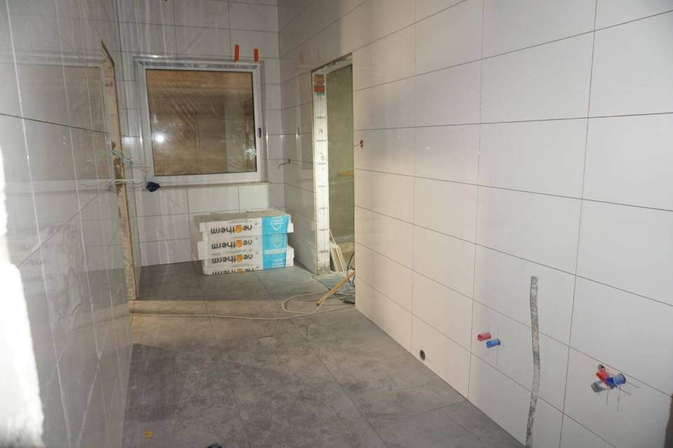 W nowopowstającym budynku wykonano już instalacje wodno-kanalizacyjne, elektryczne oraz system wentylacji mechanicznej. Obecnie trwają intensywne prace wykończeniowe — układane są płytki ścienne i podłogowe, a także prowadzone są roboty elewacyjne. Rozpoczęto również przygotowania do montażu armatury sanitarnej oraz wyposażenia łazienek i pomieszczeń gospodarczych.