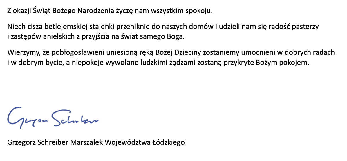 Marszałek Grzegorz Schreiber składa świąteczne życzenia