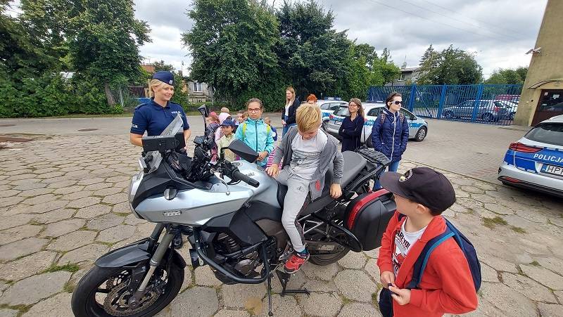 We wtorek, 17 sierpnia 2021 roku na terenie Komendy Powiatowej Policji w Kutnie odbyło się spotkanie z dziećmi wypoczywającymi na turnusie integracyjnym organizowanym przez fundację Pro Aperte. Wizyta rozpoczęła się od obejrzenia radiowozów policyjnych oraz nieoznakowanego motocykla. Dzieci od samego początku bardzo aktywnie uczestniczyły w spotkaniu i chętnie siadały za kierownicę pojazdów.