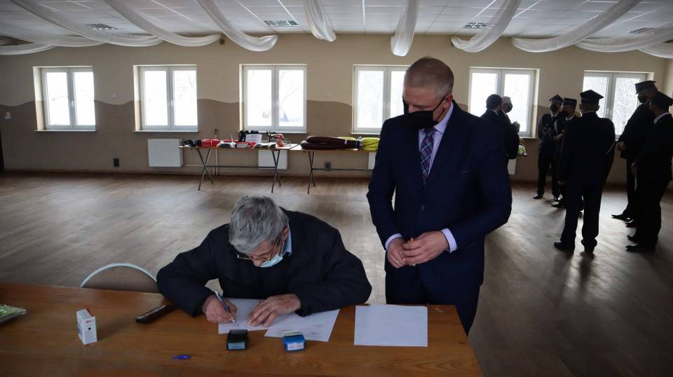 Pozyskane wsparcie finansowe zostało przeznaczone na zakup sprzętu i wyposażenia na rzecz trzech jednostek OSP z terenu naszej gminy – OSP Łanięta, OSP Suchodębie oraz OSP Witoldów. W czwartek, 14 stycznia Wójt Tomasz Szczęsny przekazał uroczyście zakupiony sprzęt przedstawicielom jednostek OSP. W wydarzeniu uczestniczył również reprezentant Funduszu Sprawiedliwości - Poseł na Sejm RP Tadeusz Woźniak oraz Dyrektor Biura Posła Janusz Kołodziejski.