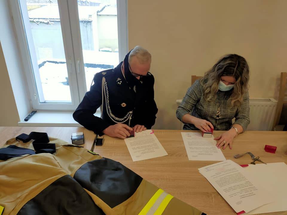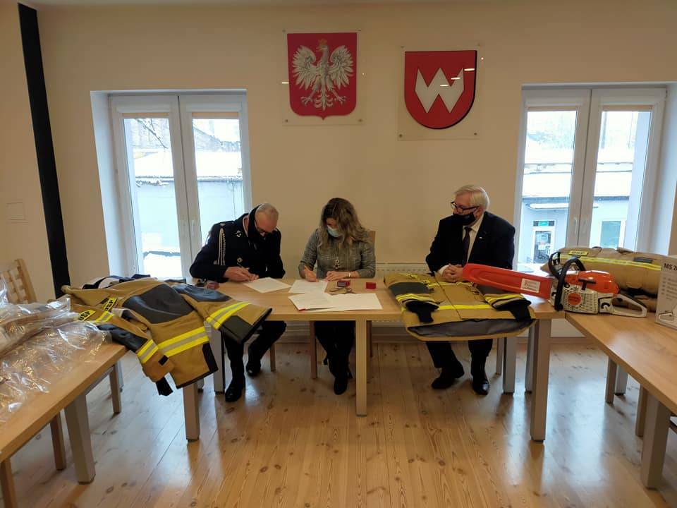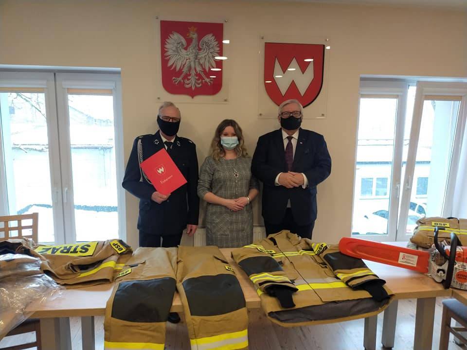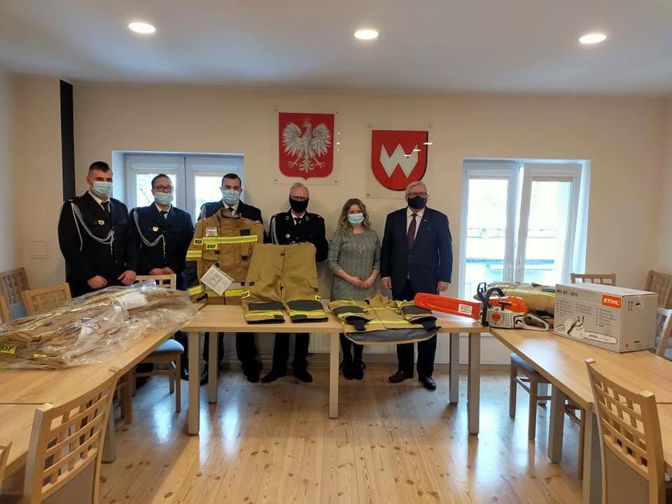 Dzięki inicjatywie Burmistrz Krośniewic, Katarzyny Erdman i Posła na Sejm RP, Tadeusza Woźniaka jednostka Ochotniczej Straży Pożarnej w Krośniewicach wzbogaciła się o 12 kompletów ubrań specjalnych, a także pilarkę do drewna.