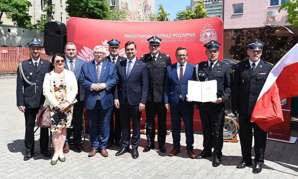 We wtorek, 8 czerwca na placu wewnętrznym Komendy Wojewódzkiej PSP w Łodzi odbyła się uroczystość wręczenia promes na zakup samochodów ratowniczo-gaśniczych dla Ochotniczych Straży Pożarnych woj. łódzkiego oraz wręczenia aktów włączenia 8 jednostek OSP do krajowego systemu ratowniczo-gaśniczego.