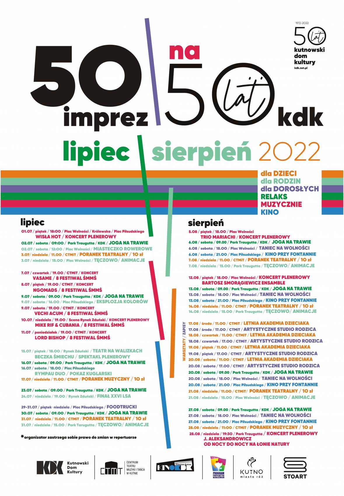 Z okazji 50-lecia istnienia Kutnowskiego Domu Kultury w lipcu i sierpniu odbędzie się pięćdziesiąt imprez skierowanych do każdego mieszkańca Kutna. Coś dla siebie znajdą dzieci, dorośli oraz całe rodziny.