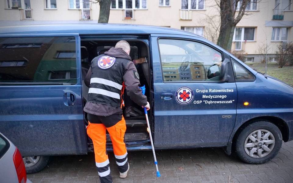 Współpracujący z Urzędem Miasta zespół transportowy OSP „Dąbrowszczak" odebrał seniorkę i dowiózł ją na szczepienie w Centrum Medycznym GlobalMedic.