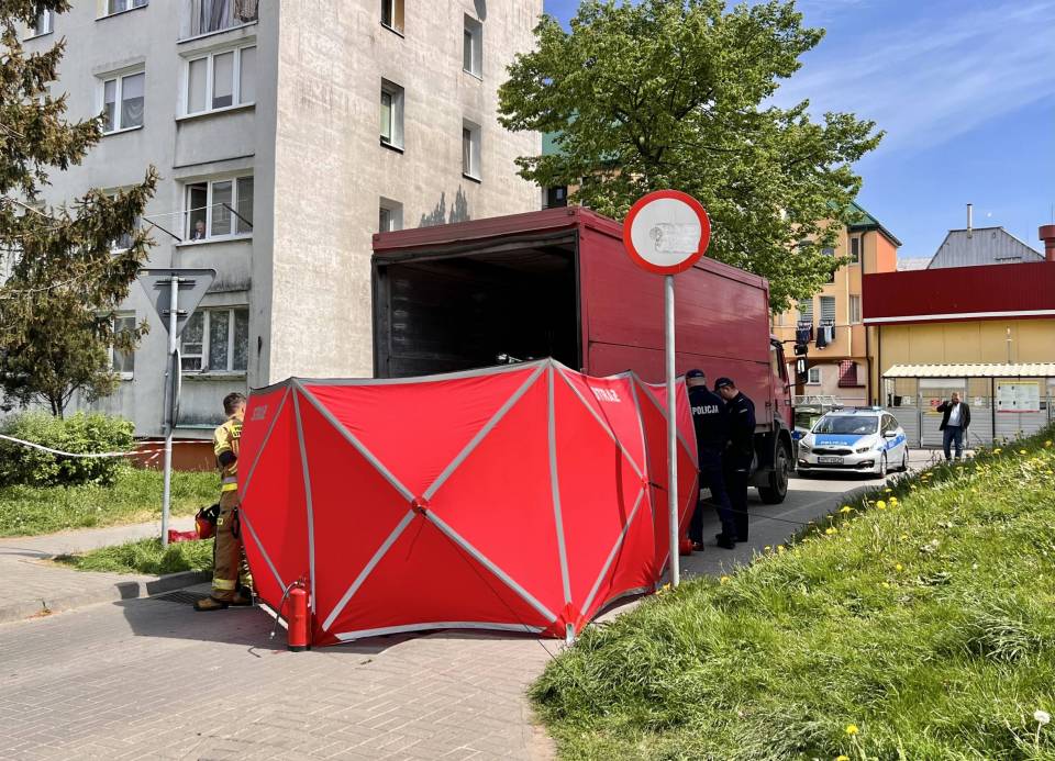 Ze wstępnych ustaleń wynika, iż kobieta w wieku około 80 lat, potknęła się i wpadła pod tylną oś samochodu ciężarowego.