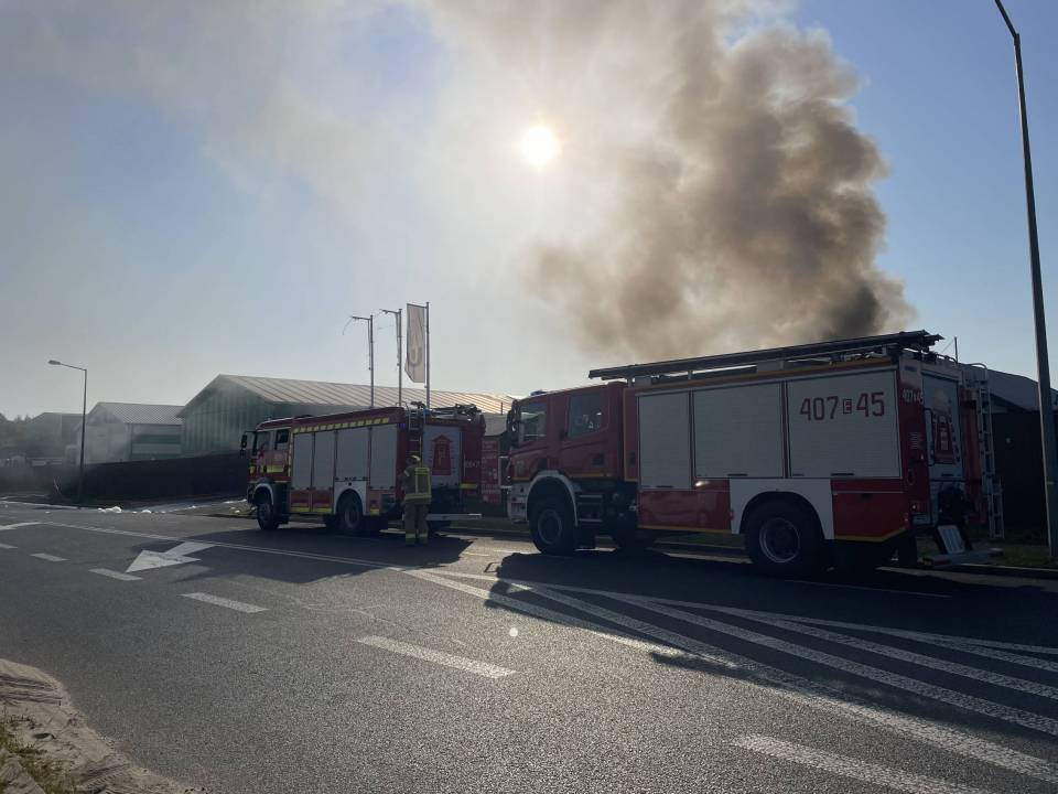 Obecnie działania strażaków koncentrują się na dotarciu do źródła ognia. Sytuację utrudnia zawalony dach hali, który uniemożliwia wejście ratowników do wnętrza budynku.