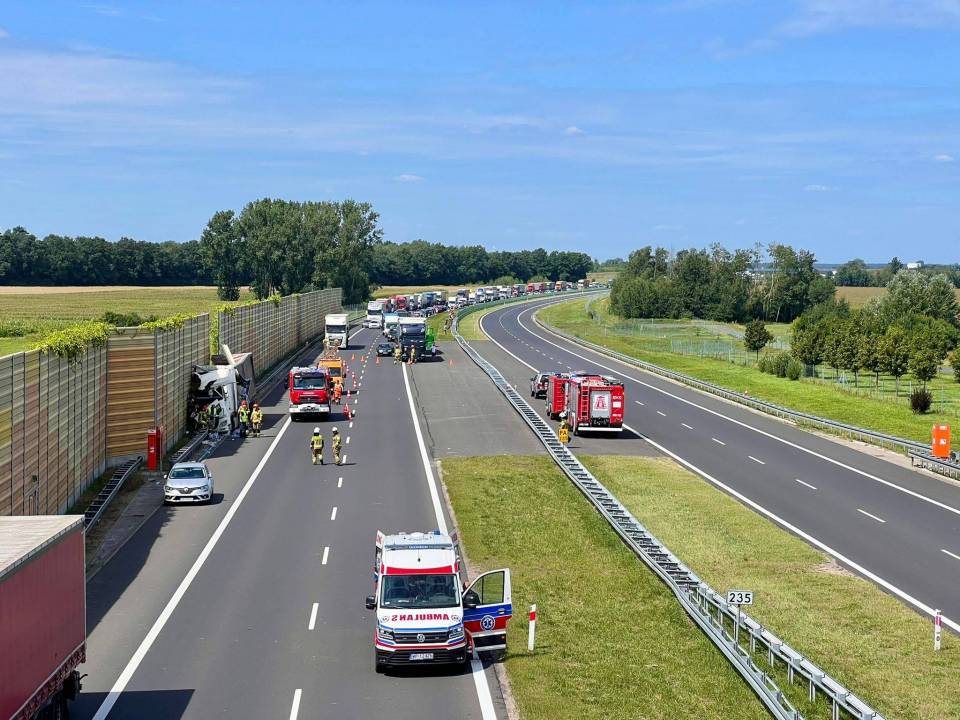 Droga jest całkowicie zablokowana. Dokładne okoliczności zdarzenia wyjaśniać będą policjanci.