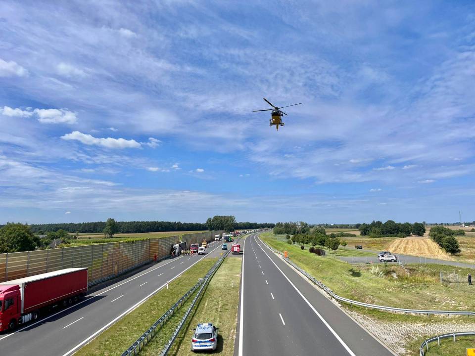 Aktualizacja: Kierujący samochodem ciężarowym został przetransportowany do szpitala przez Lotnicze Pogotowie Ratunkowe. Droga w kierunku Gdańska jest już przejezdna. W kierunku Łodzi do dyspozycji kierowców jest aktualnie jeden pas.