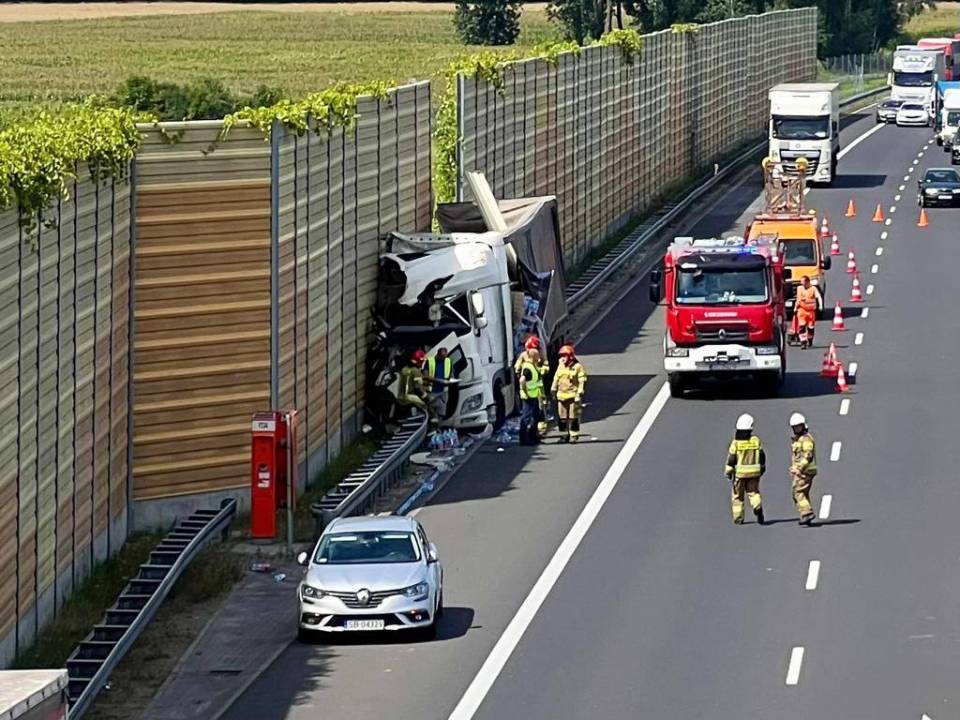 Zgłoszenie w tej sprawie do stanowiska kierowania Komendanta Powiatowego Państwowej Straży Pożarnej w Kutnie wpłynęło po godzinie 12:00. Na 235 kilometrze drogi w kierunku Łodzi, na wysokości miejscowości Juków (gm. Łanięta), samochód ciężarowy uderzyły w ekrany dźwiękochłonne. Jak udało nam się ustalić na miejscu zdarzenia, kabina auta została bardzo mocno uszkodzona.
