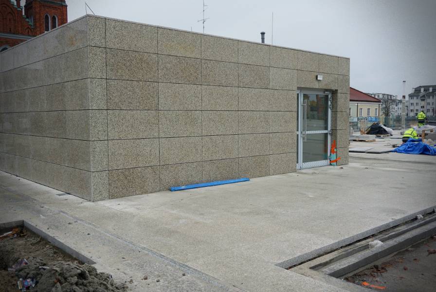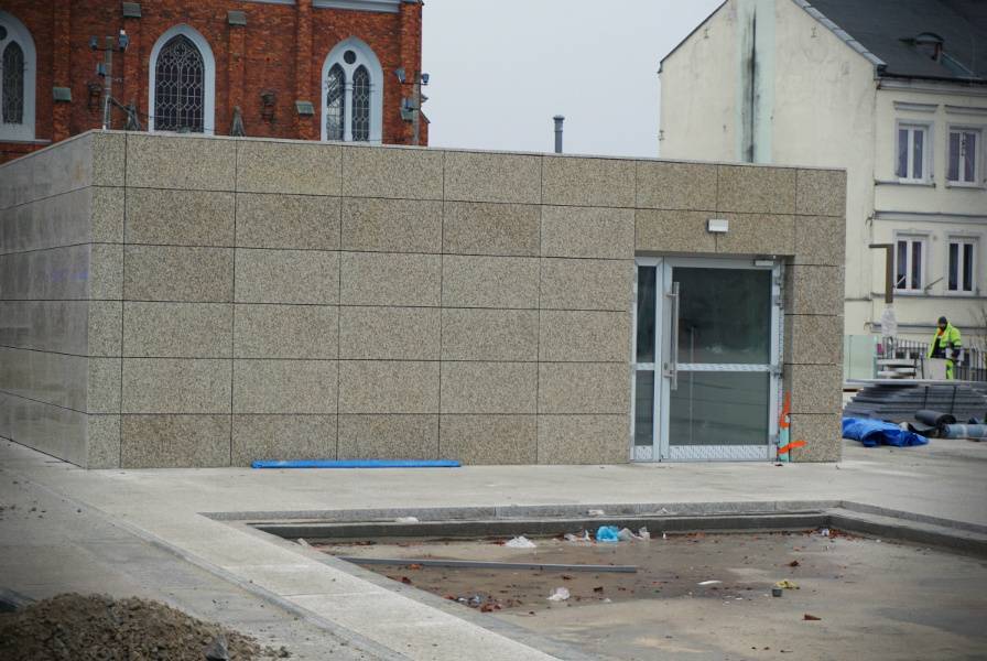Prace wykonane są już w ponad 90 procentach. Na ten moment wykańczane są pawilony: gastronomiczny i wystawienniczy. Robotnicy układają też okładziny kamienne przy fontannach na płycie placu i Rynku Zduńskim. W większości wykonany został montaż znaków pionowych i poziomych w ramach nowej organizacji ruchu w obrębie ulic: Podrzeczna, Miła, Zamenhofa, Krótka.
