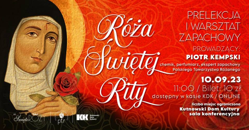 Kutnowski Dom Kultury zaprasza na prelekcję i warsztat zapachowy "Róża Świętej Rity z Cascii". Poprowadzi je Piotr Kempski.