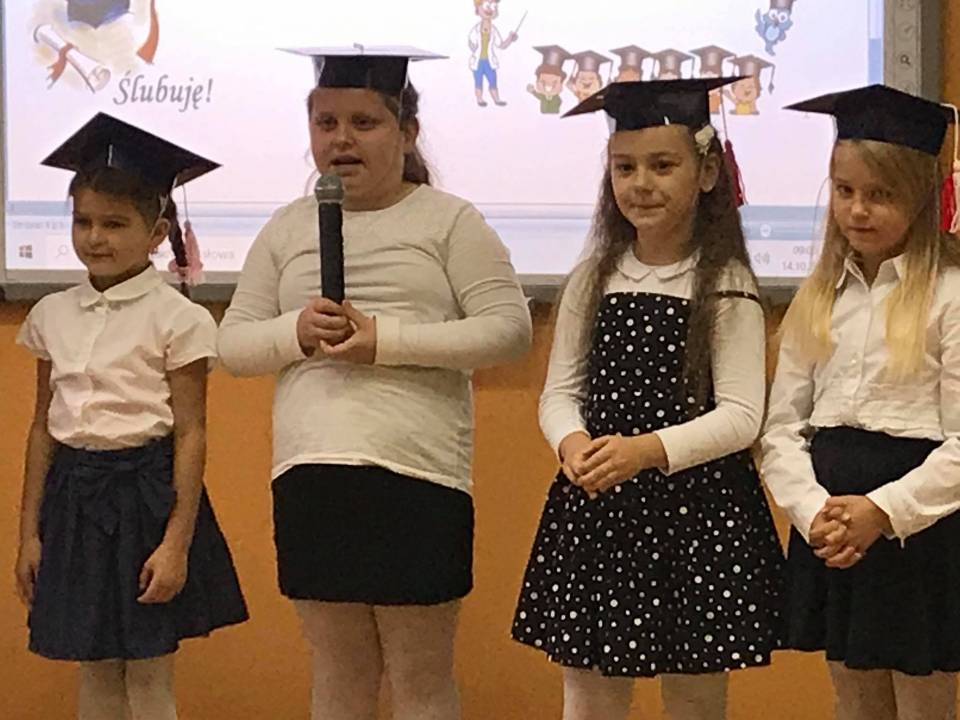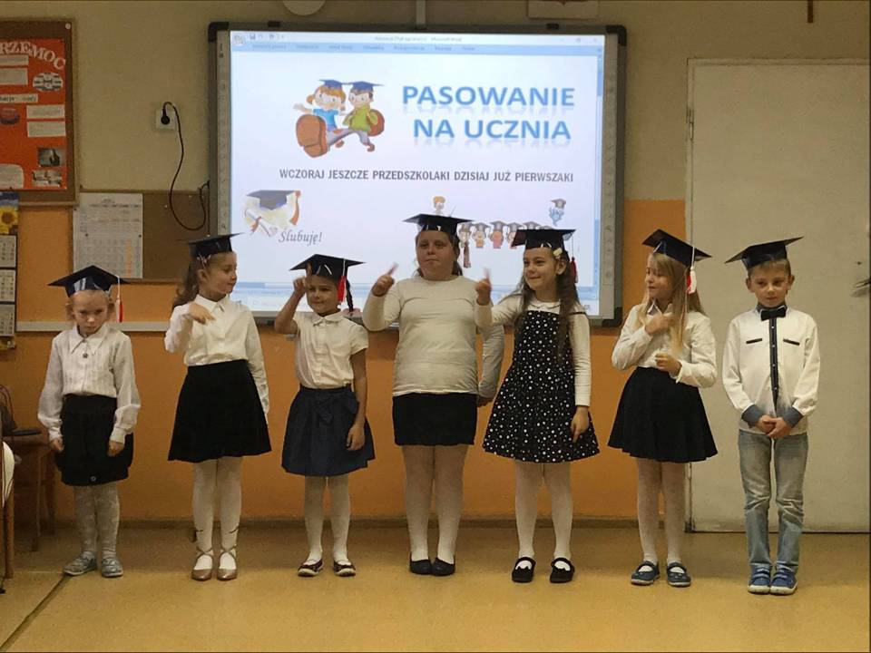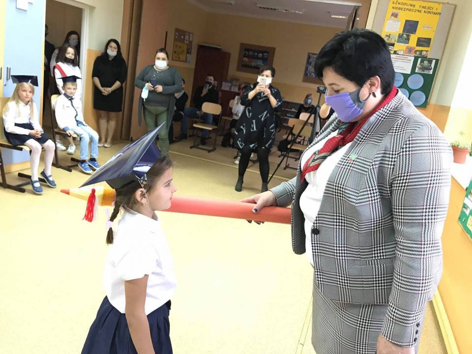 Uroczystość ta na stałe wpisała się w kalendarz imprez szkolnych. To bardzo ważne wydarzenie nie tylko dla najmłodszych, ale również dla ich rodziców. Na uroczystość przybyli zaproszeni goście - Wójt Gminy Kutno Justyna Jasińska, Dyrektor szkoły p. Beata Cieślak, nauczyciele i rodzice uczniów klasy pierwszej.