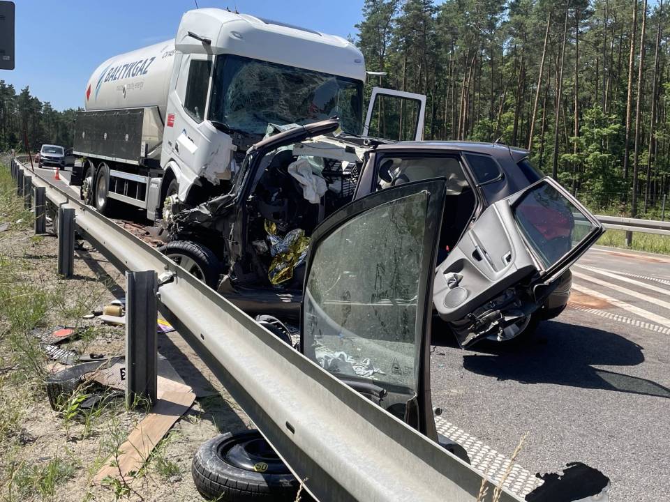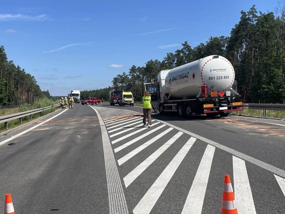 Do zdarzenia doszło w poniedziałek, 30 czerwca tuż przed godziną 10.00 rano. Wstępnie wszystko wskazuje na to, że kierujący samochodem osobowym Kia, zjechał na przeciwległy pas ruchu, wówczas doszło do czołowego zderzenia z ciągnikiem siodłowym przewożącym ładunek gazu.