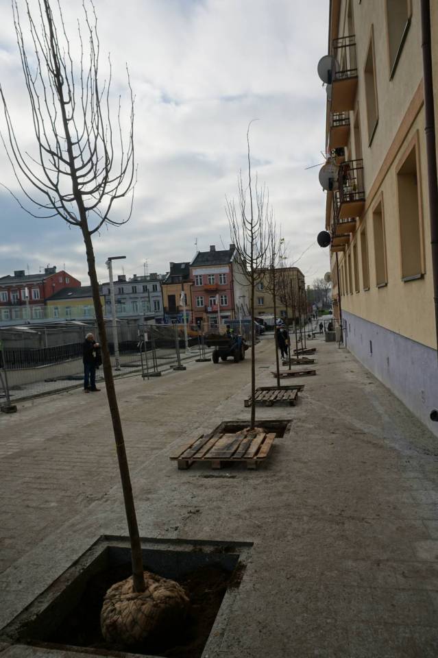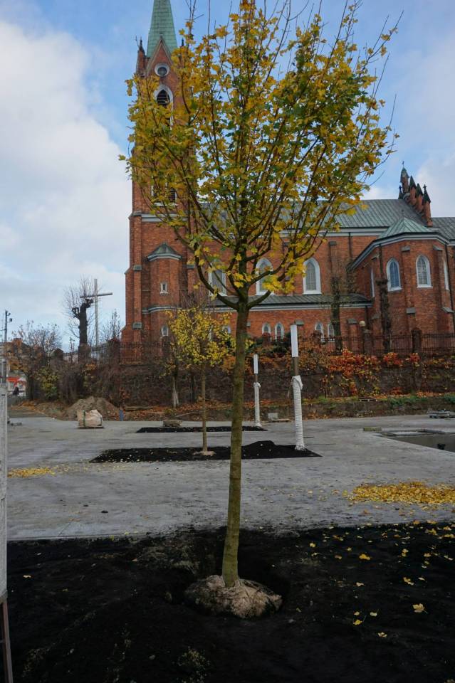 Na obszarze wokół Placu Wolności właśnie sadzone są drzewa. W specjalnie przygotowanych stanowiskach posadzone zostaną głogi pośrednie w odmianie Paul's Scarlet.