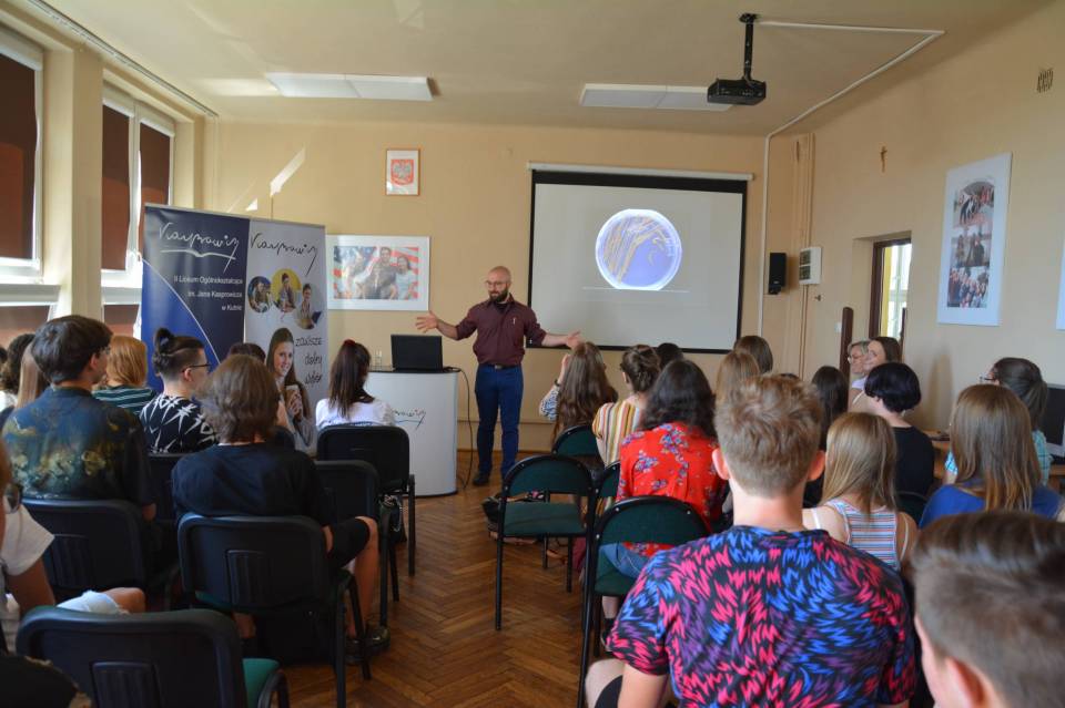 Ze strony organizacji dokument podpisał dr Mikołaj Fedorowicz, pracownik naukowy PAN, natomiast ze strony Liceum – Dyrektor Artur Ciurlej. Gość wygłosił bardzo ciekawy wykład dla uczniów o potrzebie odkrywania nauki w dzisiejszym świecie.