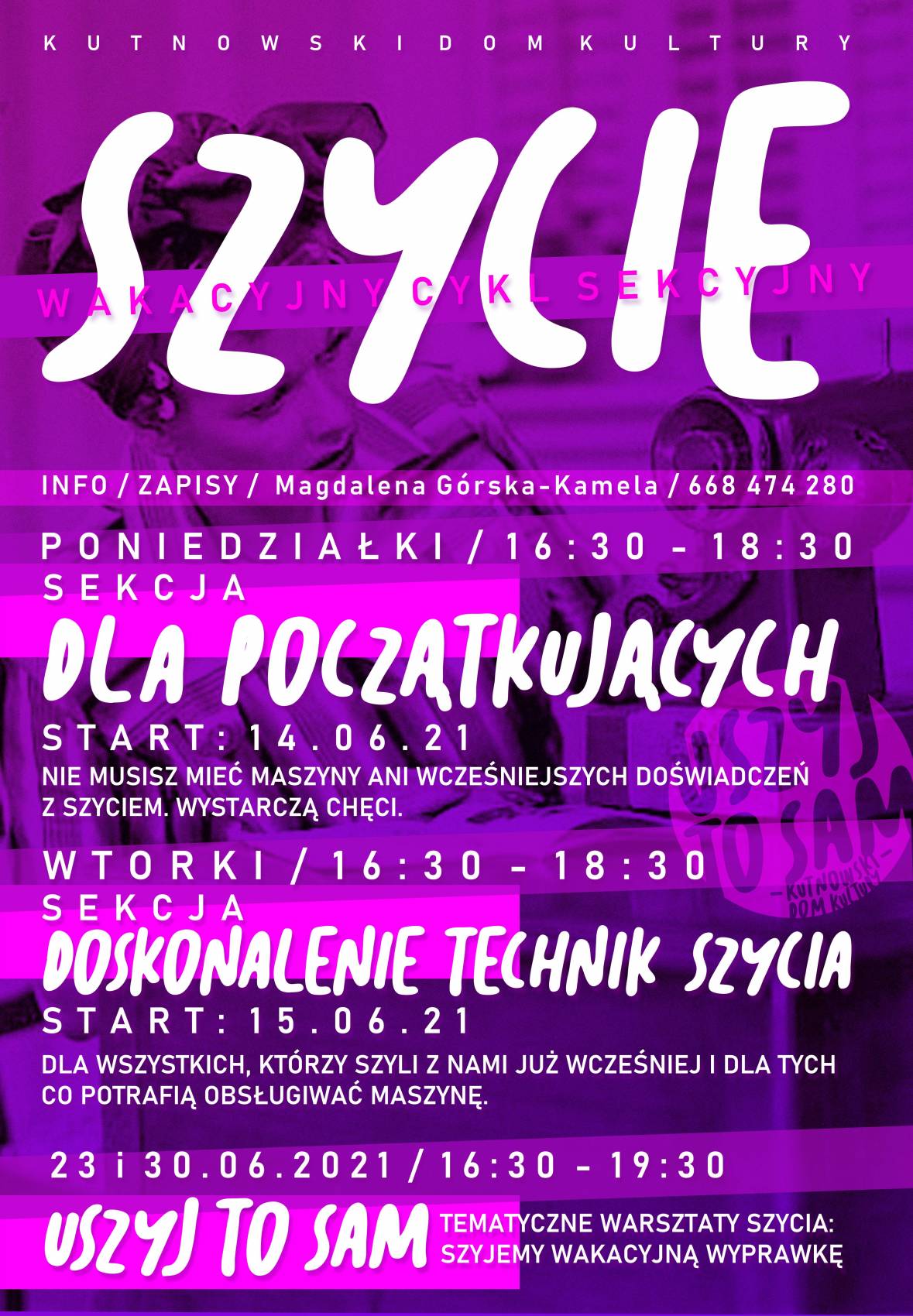 Kutnowski Dom Kultury zaprasza do udziału w wakacyjnym cyklu sekcyjnym szycia. Pierwsze spotkania już od poniedziałku, 14 czerwca.