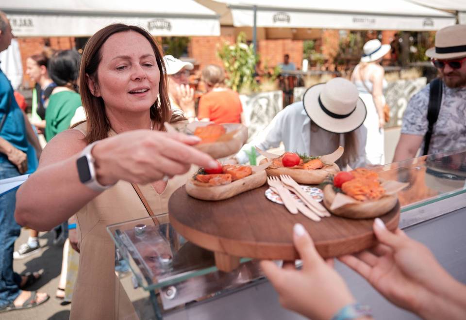 Wśród wystawców było wiele KGW oraz producentów regionalnej, tradycyjnej żywności. Ich stoiska kusiły pierogami z różnorodnym farszem, żurkiem na prawdziwym zakwasie, rzemieślniczymi serami czy domowymi przetworami. Smaki i aromaty przyciągały gości jarmarku a produkty oraz potrawy błyskawicznie znikały. - Wystawialiśmy się dzisiaj ze świeżonką, bigosem i pierogami z mięsem i kapustą, mamy też duży wybór ciast. Jest bardzo duże zainteresowanie, bardzo dużo chętnych, świeżonka już się skończyła – przyznał ok. godz. 16 Norbert Dudek z KGW Pod Lipami z Koła w pow. piotrkowskim. Gospodynie z KGW Chorki z pow. łęczyckiego do Łodzi przyjechały z prażokami, karkówką w sosie i żurkiem chorkowskim. Jak zdradziła Dorota Suchocz z koła, zupa jest robiona według bardzo starego przepisu przekazywanego z pokolenia na pokolenie. – Podstawą jest zakwas chorkowski z mąki żytniej z dodatkiem skórki chleba, kisi się go 7 dni – mówi.