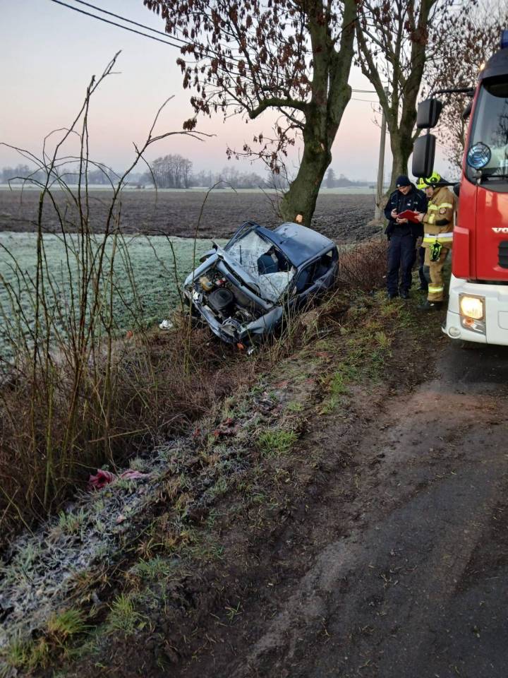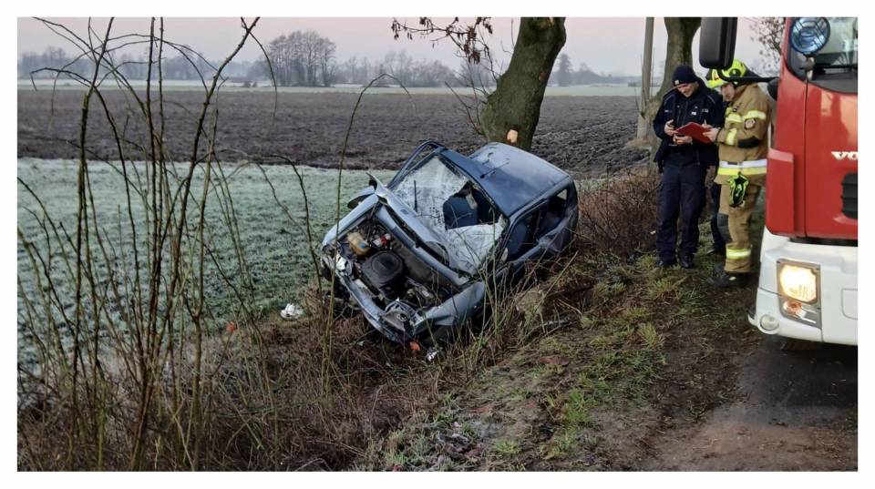 Do kolejnego groźnego zdarzenia doszło w piątkowych godzinach porannych w miejscowości Sójki w powiecie kutnowskim. 18-letni kierowca samochodu marki Kia, nie dostosowując prędkości do panujących warunków, zjechał do przydrożnego rowu, uderzył w drzewo, a następnie dachował. Młody kierowca został przetransportowany do szpitala w Kutnie.