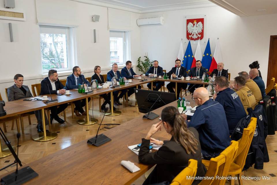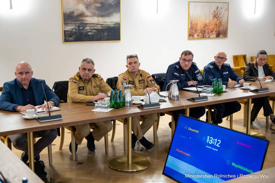 W czwartek, 4 grudnia minister Stefan Krajewski spotkał się dzisiaj z przedstawicielami policji, straży pożarnej oraz Agencji Bezpieczeństwa Wewnętrznego, aby omówić dalsze kierunki działań w związku z wykryciem zwłok dzika zakażonego afrykańskim pomorem świń (ASF).