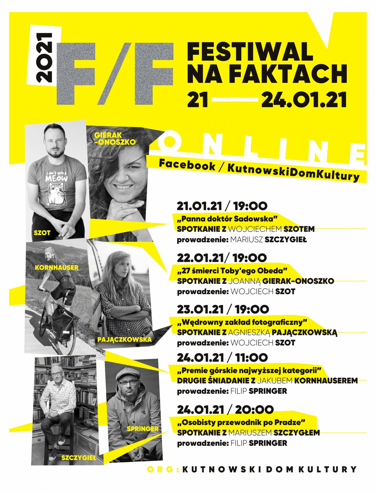 - W tym roku skupiamy się na spotkaniach i rozmowach z najciekawszymi reporterkami i reporterami – Mariuszem Szczygłem, Joanną Gierak-Onoszko, Jakubem Kornhauserem, Agnieszką Pajączkowską, Wojciechem Szotem i Filipem Springerem. Po raz pierwszy ogłosimy też ogólnopolski konkurs na reportaż miejski dla młodzieży, a konkursem "dowodzić" będzie Olga Gitkiewicz. Szczegóły konkursowe już wkrótce na naszej stronie! - informują organizatorzy.
