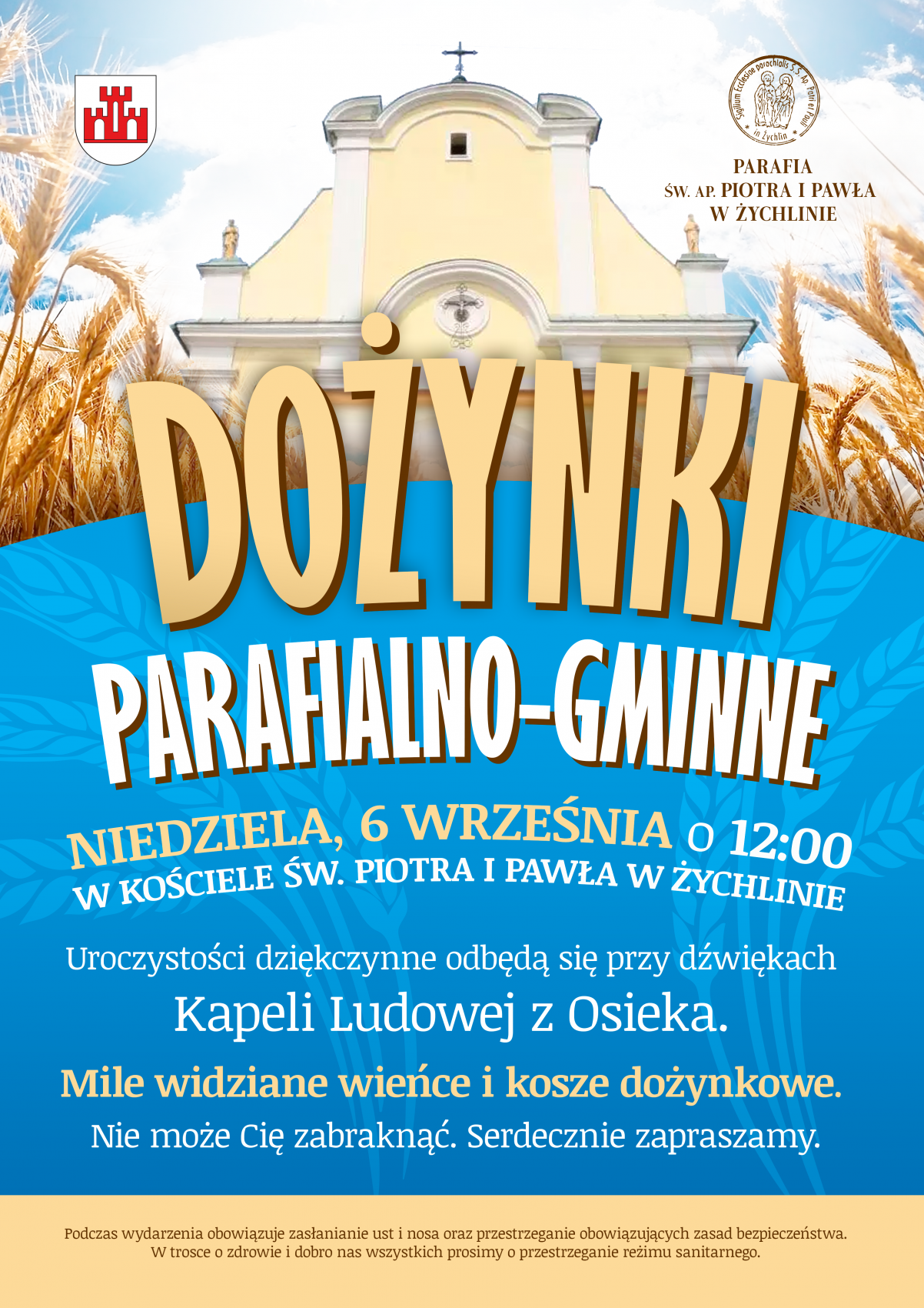 Urząd Gminy Żychlin i Parafia Św. Apostoła Piotra i Pawła w Żychlinie zapraszają na Dożynki Parafialno-Gminne, które odbędą się w niedzielę, 6 września.