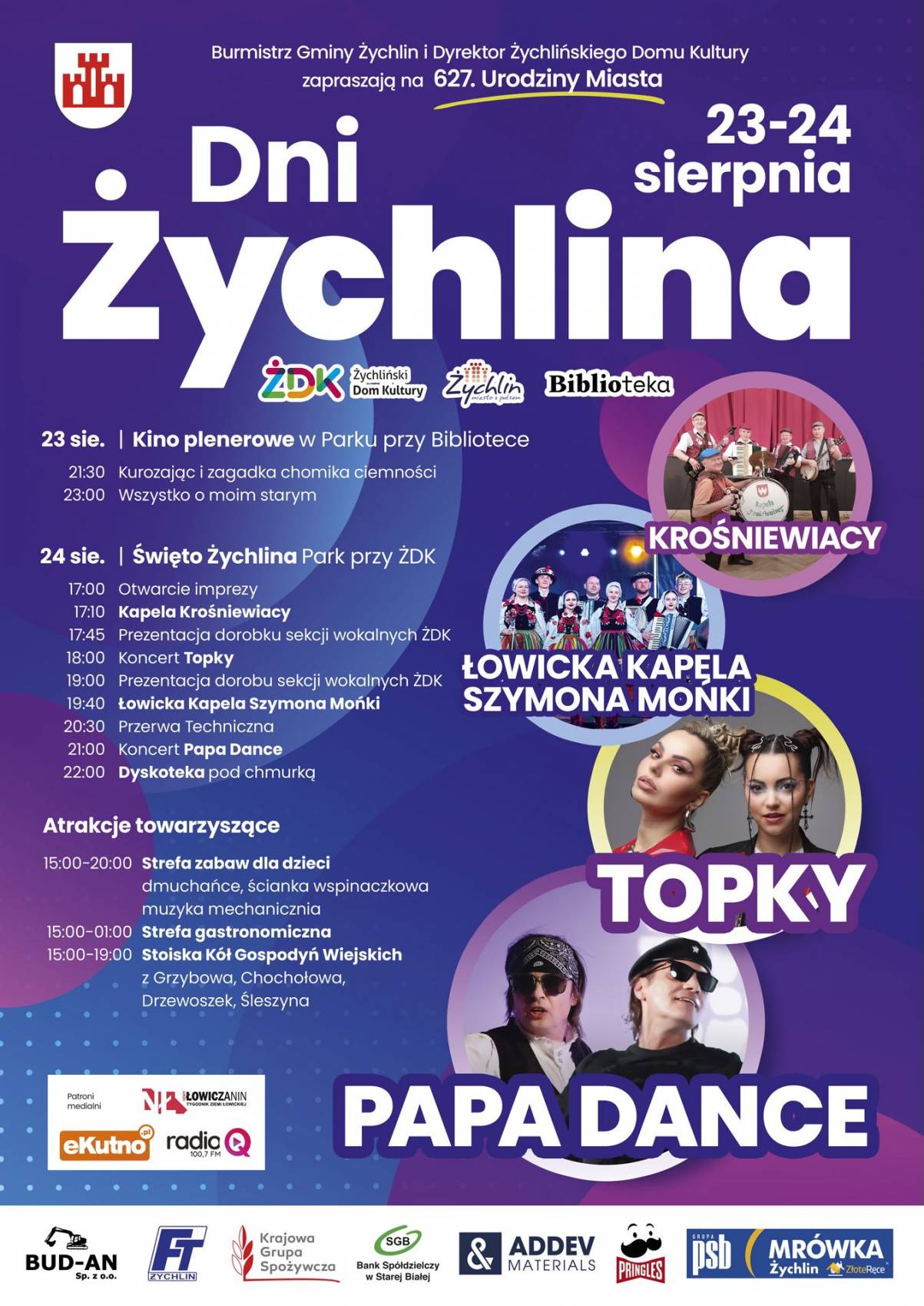 Uroczystości rozpoczną się w piątek (23 sierpnia) od kina plenerowego w Parku przy Bibliotece. Kolejna cześć wydarzenie odbędzie się następnego dnia w Parku przy Żychlińskim Domu Kultury, gdzie nie zabraknie wielu atrakcji dla dzieci i dorosłych. Zaplanowano m.in. dmuchańce, strefę gastronomiczną czy stoiska KGW. Nie zabraknie oczywiście występów artystycznych. Na scenie zaprezentują się Topky, Łowicka Kapela Szymona Mońki czy Papa Dance.